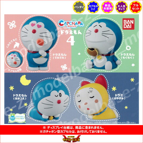 【ドラえもん カプキャラドラえもん パート4 全4種】 カプセルから、ビッグサイズのフィギュアに!大好評 カプキャラドラえもん の第4弾がついに登場! ドラえもんの顔のカプセルに入ったパーツを出して組み立てると、縦サイズ約9cmのビッグサイズのドラえもんフィギュアの出来上がり! ガシャポンとは思えない大きさで存在感バッチリ! 今回は一緒に寝転んだドラえもんとドラミちゃんがラインナップ!たくさん集めて並べてね! ★