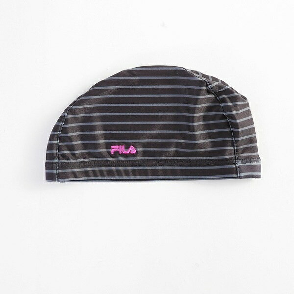 フィラの【FILA】ボーダー柄プリント キャップ細ボーダープリントのスイムキャップ。
