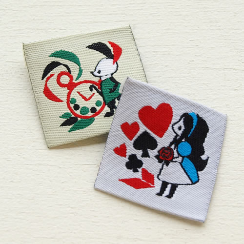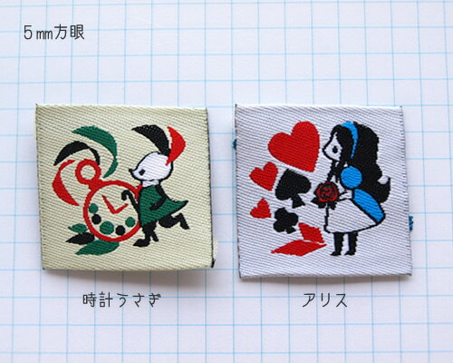 ハンドメイド タグ og12 刺しゅうタグ・四角タグ・イラスト風不思議の国のアリス(時計うさぎ・アリス)