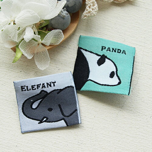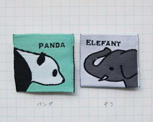 ハンドメイド タグ og12 刺しゅうタグ・四角タグ(パンダ・ゾウ)