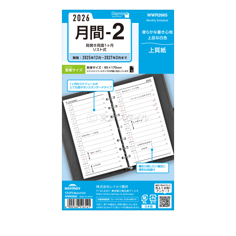 【2021年版リフィル Keyword】【条件付メール便送料無料】システム手帳 リフィル 2021年版 キーワード バイブル 月間-2 見開き両面1ヶ月 1月/4月始まり両対応 上質紙 (WWR2165)